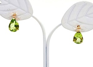 丸いラウンドカットをされたペリドットが4石ずつ石留めされています。左右の地金ラインは中央が広く先に向かって狭くなっています。