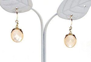 つるんとした表面のカボションカットに乳白色の色が可愛いピアスです。ころんとしたひし形のカットも特徴的かと思います。
