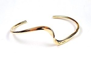 しなやかな曲線とイエローゴールドの美しさを引き出す鏡面仕上げです。肌にしっとりと馴染むので大ぶりですが疲れにくいです。