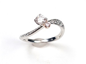 中石のグレーディングがファンシーライトピンクのピンクダイヤモンドで石目は0.135ctです。写真だと分かりにくいのですが実物は優しい色味ではっきりとしたピンク色をしています。