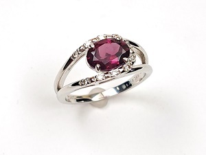 ロードライトガーネットらしいピンクと紫の中間色のような鮮やかなお色が美しいです。石目は1.22ctと大変大きいです。